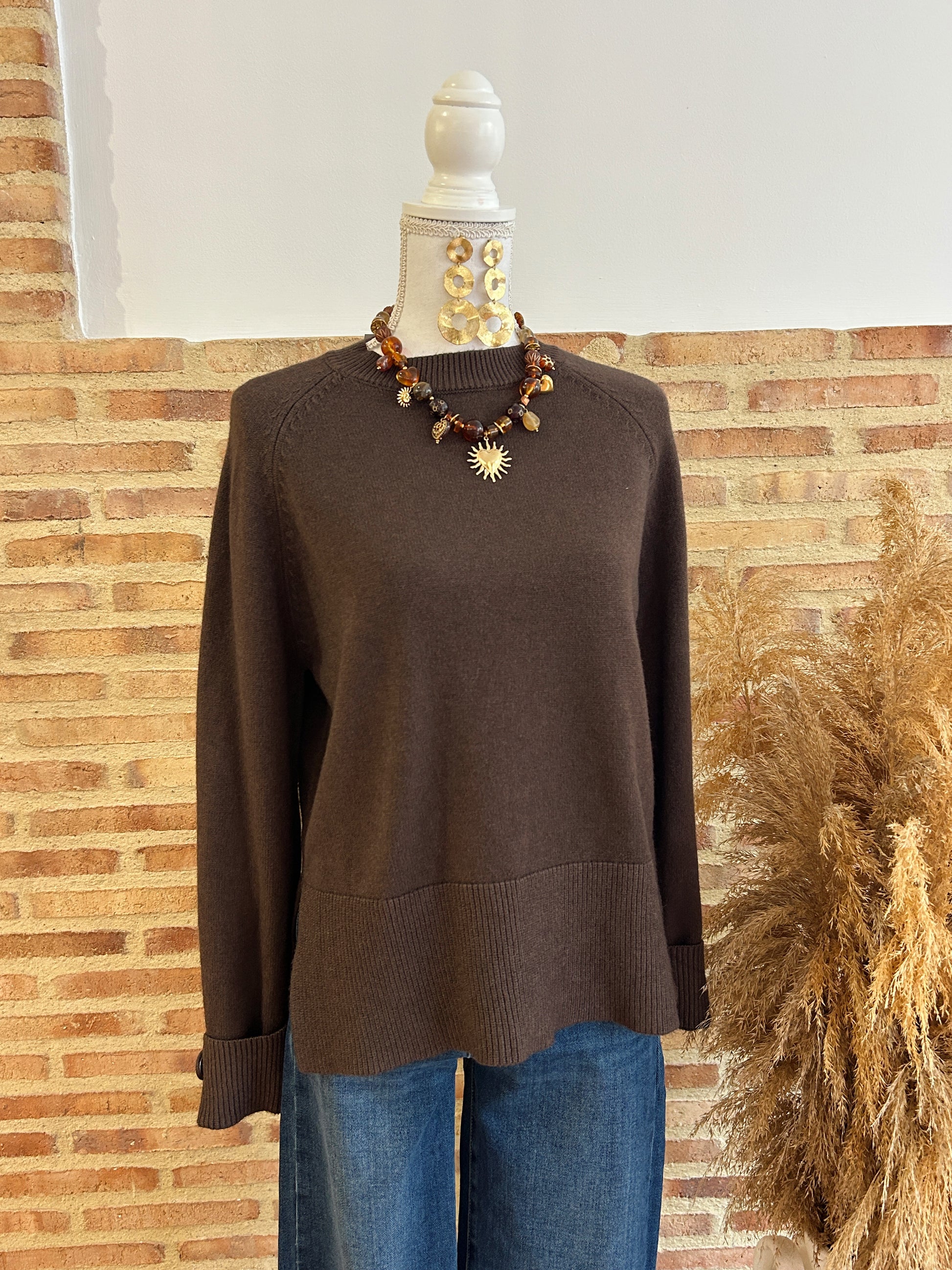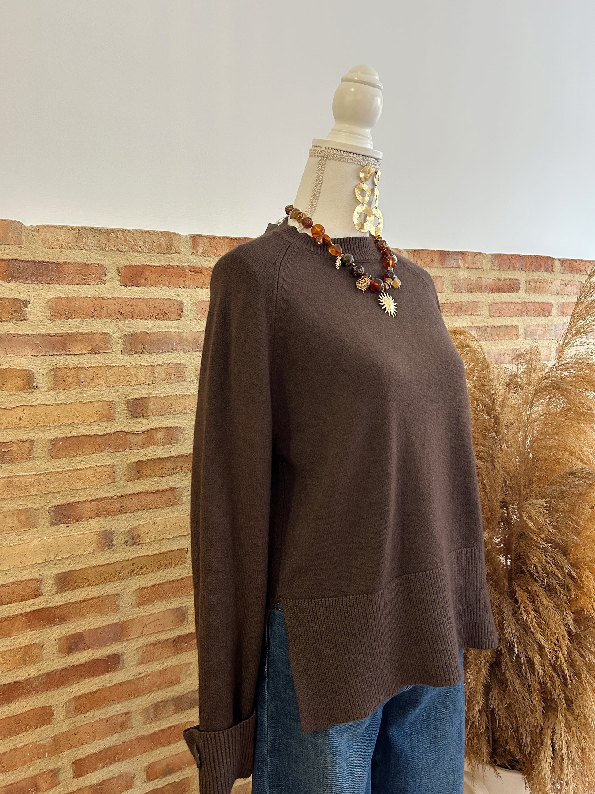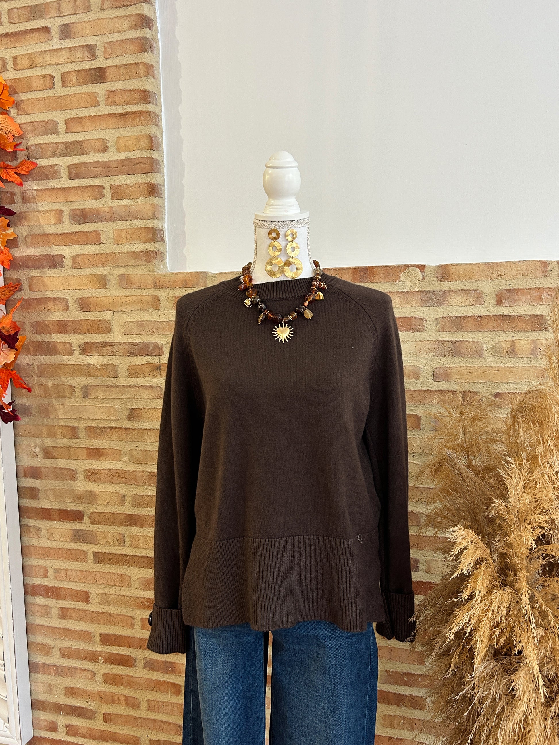 El tono marrón chocolate aporta ese toque elegante y cálido que combina con absolutamente todo —desde jeans hasta faldas midi.